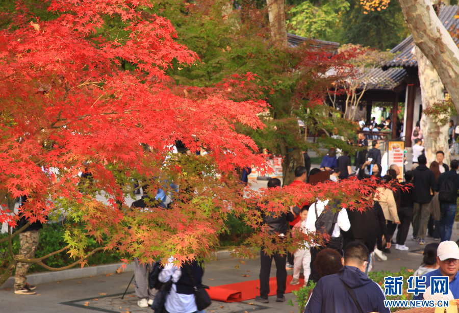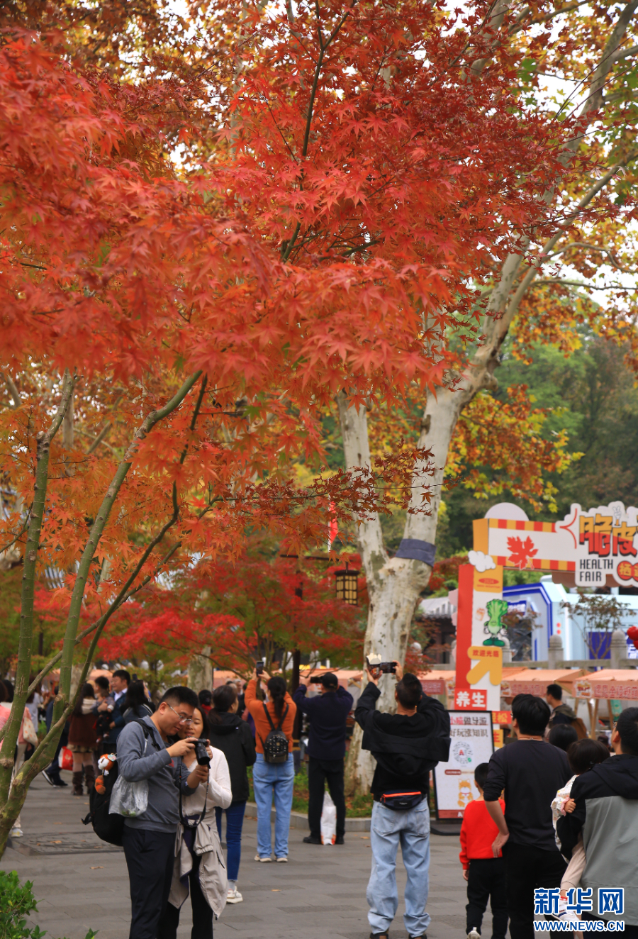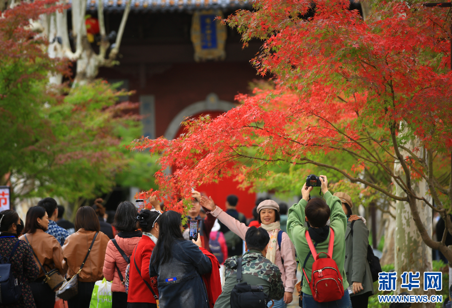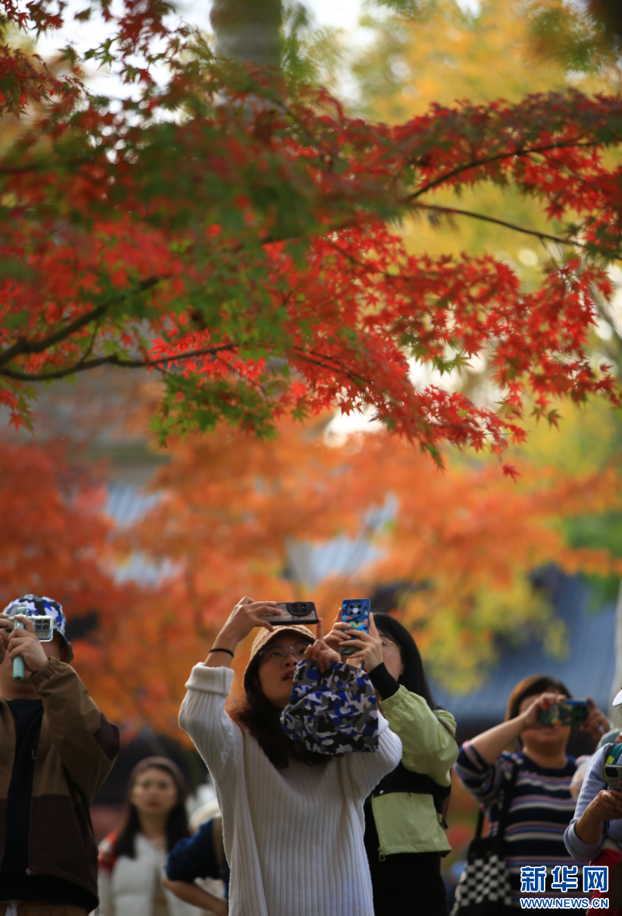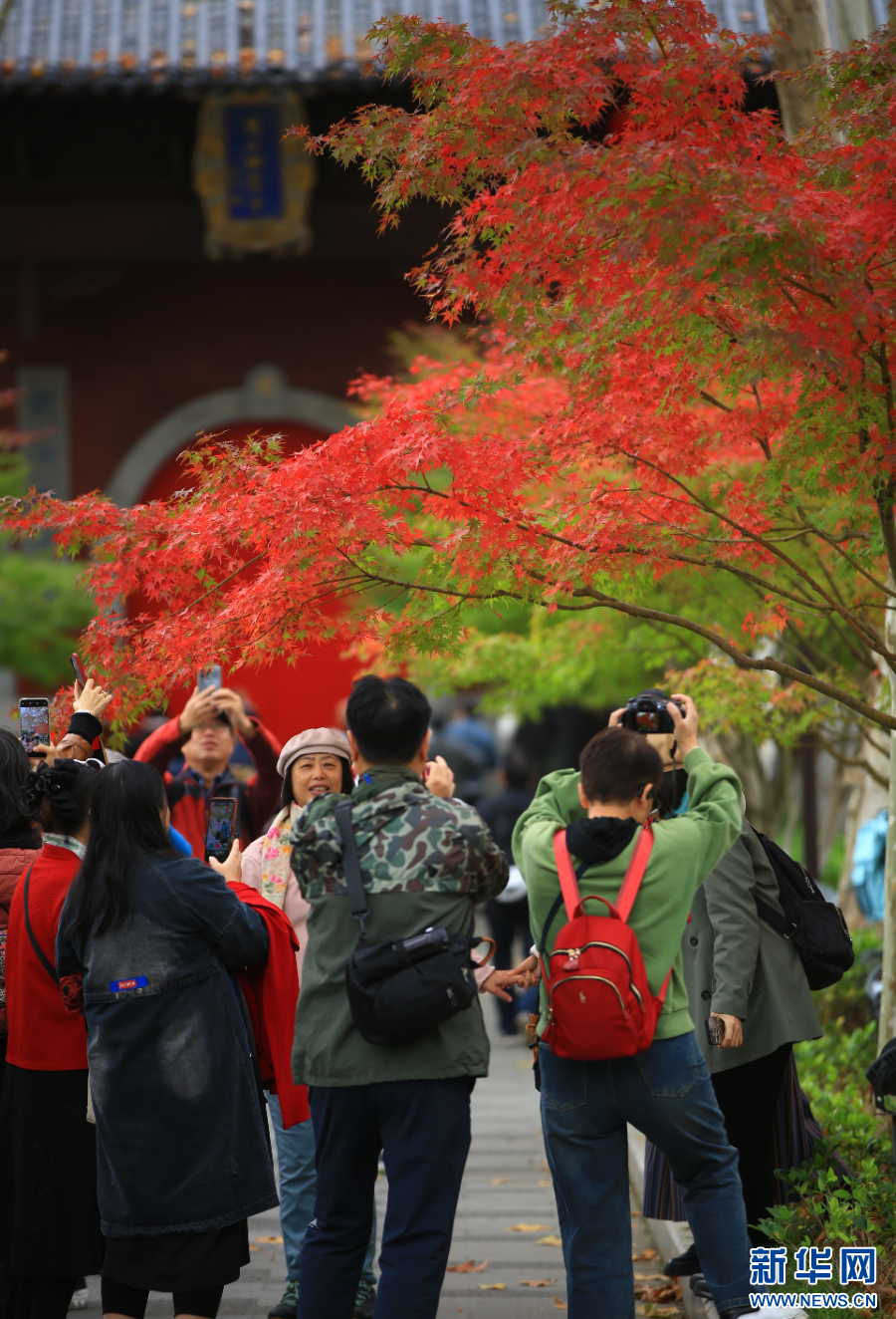 随着气温降低,南京栖霞山的枫叶进入最佳观赏期。作为中国四大赏枫胜地之一,很多游客应时慕名而来,漫步于如画的美景中,用镜头捕捉下这个季节栖霞山的独特魅力。(崔雯雯 蔡晖)
