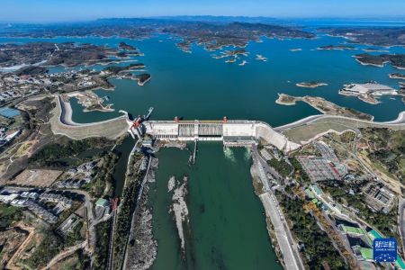 11月30日拍摄的丹江口大坝(无人机照片)。