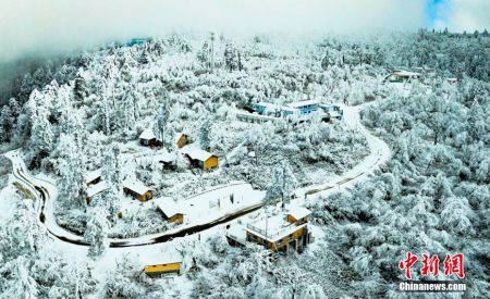 据悉,雪后的王岗坪连绵山脊、万顷森林,皆笼罩在白茫茫的静谧之中。树枝挂满了雪球,犹如玉树琼枝,美不胜收;雪花似精灵般在水中墨画间跃动,令人心旷神怡,仿佛置身于一个梦幻的世界;飞雪与雾凇交相辉映,映衬着林间小木屋的点点灯火,恰似人间仙境;游人在冰雪世界里游玩,让人沉醉其中。图为王岗坪景区雪景。(周万龙 摄)