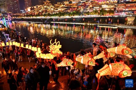 春节长假期间,各地民俗活动红火热闹、非遗展演精彩纷呈、节日装饰耀眼璀璨,人们欢天喜地闹新春。