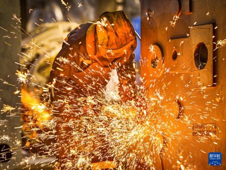 2月7日,在浙江省宁波市鄞州区东吴镇的日月重工厂区,工人打磨抛光风电设备部件。民营经济是推进中国式现代化的生力军,是高质量发展的重要基础。新时代新征程民营经济发展前景广阔、大有可为,广大民营企业和民营企业家大显身手正当其时。