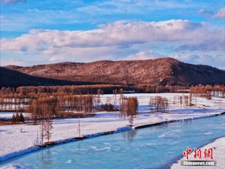 近日,内蒙古根河市,河岸的树木逐渐苏醒,舒展新枝。3月末的“中国冷极”——呼伦贝尔根河市依旧残留着对冬的眷恋,部分积雪仍未消融。而在根河河畔,河滩中日益泛红的红毛柳、永久冻土层上草木抽出的嫩芽,依稀透露出春的气息,一景一画间勾勒出这片土地上独特的春韵。(张红梅 摄)