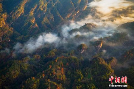 武夷山市位于福建西北部,素有“碧水丹山秀甲东南”的美誉。春天里,福建武夷山国家公园常常笼罩在迷蒙烟雨中,呈现“雾锁山头山锁雾”的景观。(