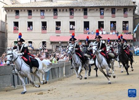 当日,锡耶纳赛马节在意大利托斯卡纳大区古城锡耶纳举行。锡耶纳赛马节是世界闻名的意大利传统民间活动,始于1656年,每年7月和8月举行。