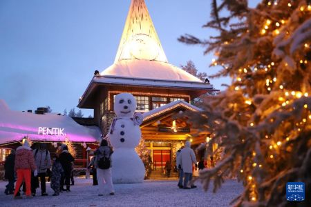 1月4日,人们在芬兰罗瓦涅米“圣诞老人村”游览。