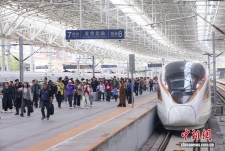 4月3日,旅客在北京北站出行。当日,为期5天的铁路清明假期运输正式启动,自4月3日至4月7日,全国铁路预计发送旅客9050万人次,日均发送旅客1810万人次。