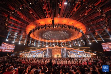 这是4月16日拍摄的第十六届北京国际电影节开幕式现场。