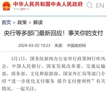 2023年年底,中国人民银行副行长张青松提出“大额刷卡、小额扫码、现金兜底”的解决方案,包括完善境外银行卡受理环境、丰富移动支付产品供给、改善现钞使用环境等。今年2月5日,北京首都国际机场和大兴国际机场正式启用境外来宾支付服务示范区,第一时间为境外抵京人员提供境外银行卡刷卡、扫码支付、外币兑换、现金使用等服务。
