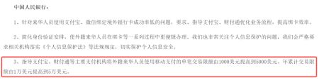3. 支付宝、财付通等主要支付机构将外籍来华人员使用移动支付的单笔交易限额由1000美元提高到5000美元、年累计交易限额由1万美元提高到5万美元。