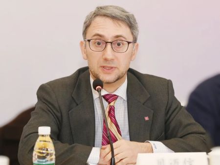 世界中餐业联合会会长助理牟栋梁主持发布会议