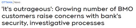 加拿大蒙特利尔银行(Bank of Montreal)的几位客户对网上银行系统的安全措施存在不足提出了警告。CTV从多名客户处获悉,他们或他们的家庭成员经历过账户资金被盗,并通过全球汇款被汇到了海外。