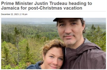 总理及其家人于圣诞节后在牙买加Ocho Rios附近的Prospect庄园住了10天,这次度假总共花费了23万零442加元。相比之下,2022年圣诞假期期间的类似旅行的总共花费为16万2000加元。