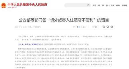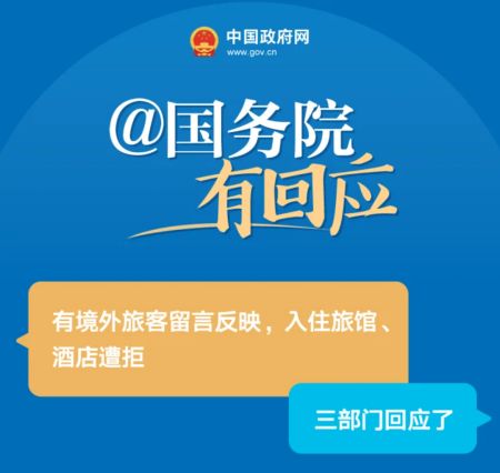收到网友留言后,中国公安部和国家移民局高度重视,正在积极协同配合商务部、文化和旅游部等行业主管部门研究工作措施,要求旅馆业不得以"无涉外资质"为由拒绝接待境外人员,指导监督旅馆业进一步改进涉外接待服务能力,提升从业人员服务水平。