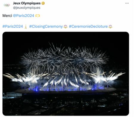 奥运圣火熄灭,但奥运带给人们纯粹的快乐和激励却不会消失。让我们为每一个突破而鼓掌,也为每一个坚守而感动!闭幕式就是一场盛大的告别,也是新的开始。再见,巴黎;我们洛杉矶再见!(据都市网、新华社)