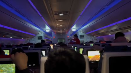 据网友@一直在路上的William透露,“机上几百位乘客的呕吐声此起彼伏,多亏了几位空乘专业处理和安抚,最终落地以后也是一阵掌声响起。”他还说,“这次航班上的好几位乘务员乘务长都有十几年的飞行经验,也被整yue了,真的是太不容易了!”从网友发布的视频来看,前排乘客双手紧紧抓住座椅,空姐则是在过道中安抚乘客。