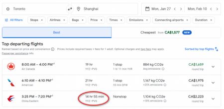 从网友的反馈来看,变化主要发生在温哥华飞北京的航班,一月份东航多伦多飞上海的航班飞行时间没有变化,仍然是14个多小时。混乱的局势下,各种变化并不奇怪。在过去相当长的一段时间,中国航司都能飞跃俄罗斯领空,维持正常的飞行时间。现在的变化也不确定是临时政策还是长期改变。提醒大家,如果你购买的有12月、1月的机票,务必留意航空公司的通知。很难说会有什么事情发生。(据都市网、图微博截图)