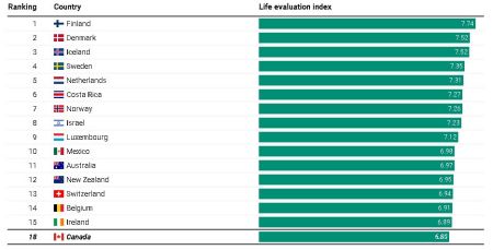 最新发布的《全球幸福报告》显示,加拿大的全球幸福排名持续下滑。2025年,加拿大在全球幸福排名中位列第18名,相比2023年的第15名和2011年的第5名,排名大幅下降。这一趋势与加拿大人自评生活质量的显著下降一致:2024年,加拿大受访者对生活的满意度评分平均为6.8分(满分10分),相比2011年的7.5分下降明显。
