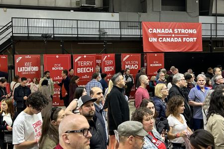 联邦大选进入倒数第5天,自由党党领卡尼(Mark Carney)周三(4月23日)在BC省展开一连串造势活动,上午在BC省维多利亚市直捣新民主党据点之后,晚间则抵达素里与保守党短兵相接的选区,再次向BC选民强调,在特朗普政府关税威胁下,他将保护该省林木能源等重点产业。不同于其他党领,卡尼是在夫人戴安娜(Diana Carney)前导并「挂保证」下出场。戴安娜本身是经济学家和气候政策专家,并积极参与环境和社会正义。她说:「这次选举正值危机时刻,唯一可以对抗危机的人唯有我的先生一一总理卡尼。」