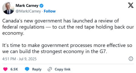 许多人已经在说,卡尼的执政方式看起来就像是一位保守党人。卡尼在周三下午于社交媒体平台X上发文称:“加拿大新政府已经启动了对联邦监管的审查——以削减束缚我们经济发展的繁文缛节。”“是时候让政府流程更有效率了,这样我们才能打造G7中最强的经济体。”