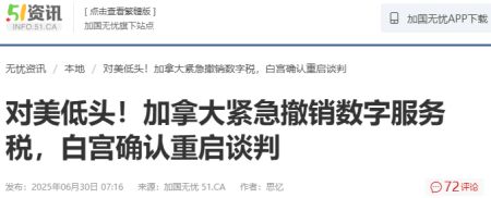 卡尼周末晚上加班也要向美国低头,只因特朗普在6月28日的一条帖子里,放出了一句狠话:“立即终止与加拿大的所有贸易谈判。”并且明确指出,数字服务税是对美国一次直接且公然的攻击。对此,大家怎么看呢?(据51网、ca.news)