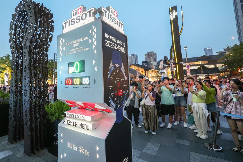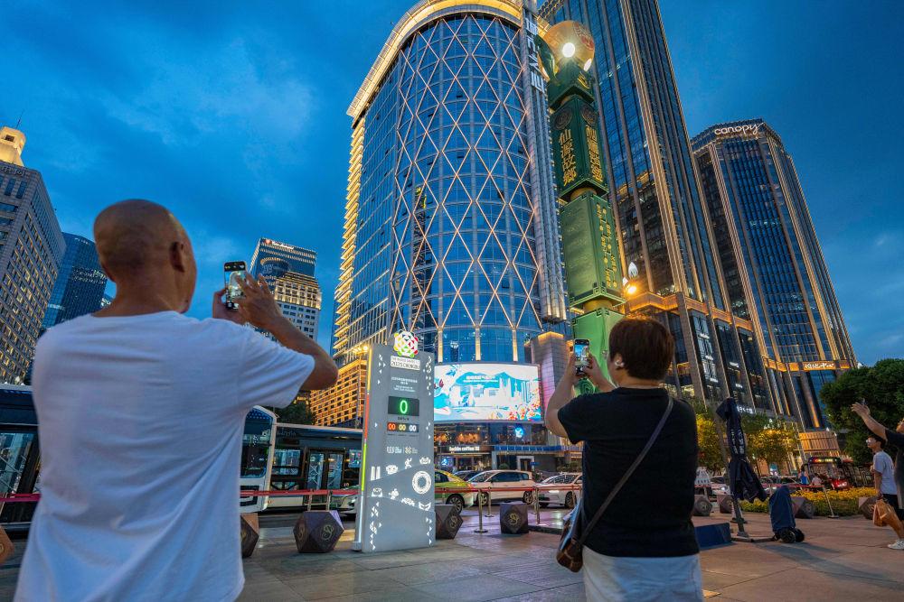 ↑在成都太古里拍摄的世运会倒计时牌。 新华社记者 张丽芸 摄