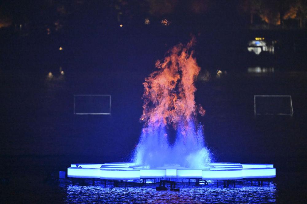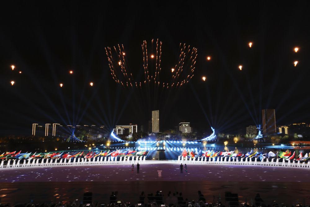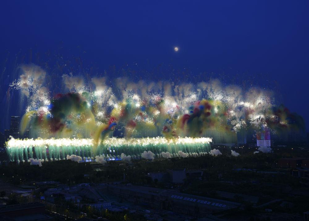 ↑这是开幕式上的焰火表演。 新华社记者 陈斌 摄