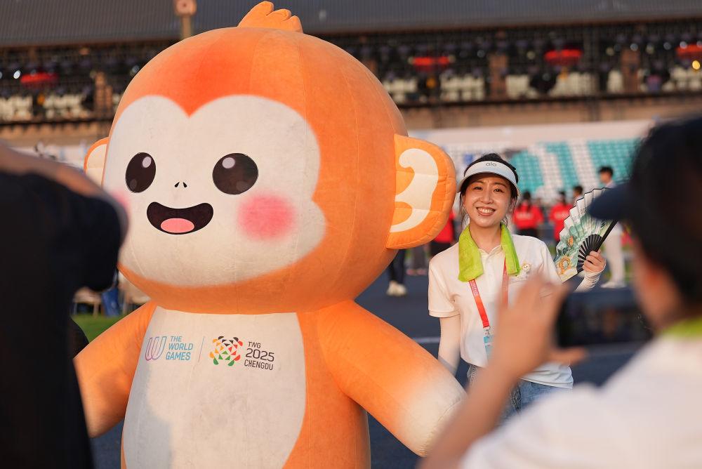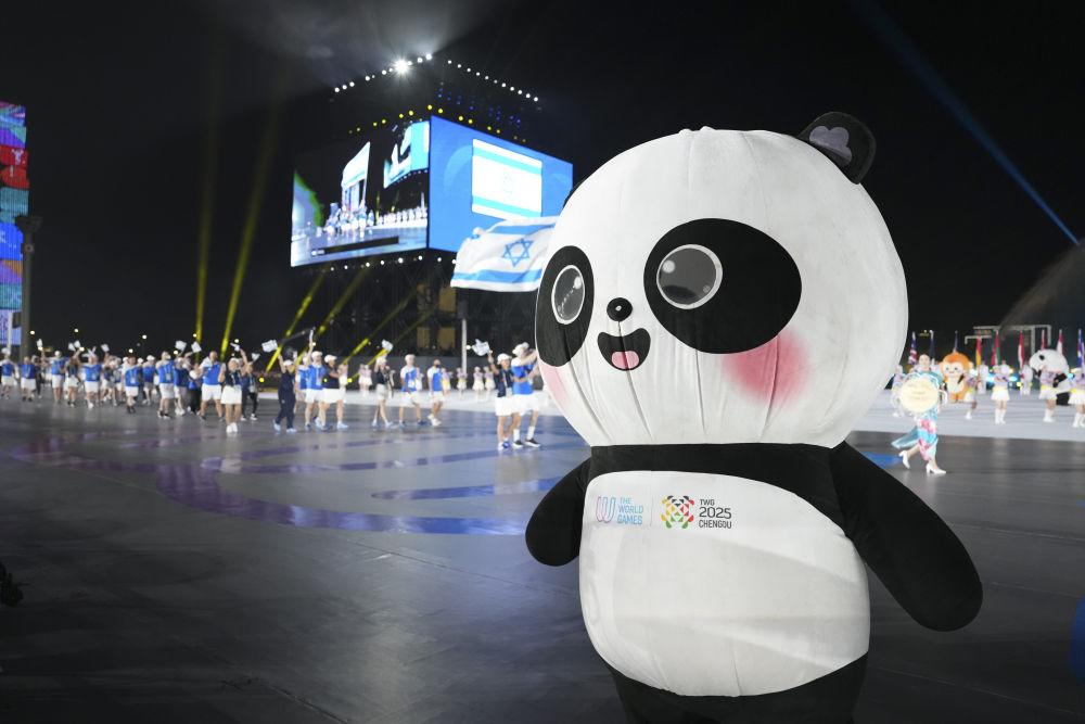 ↑这是8月7日在开幕式上拍摄的吉祥物“蜀宝”。新华社记者 刘坤 摄