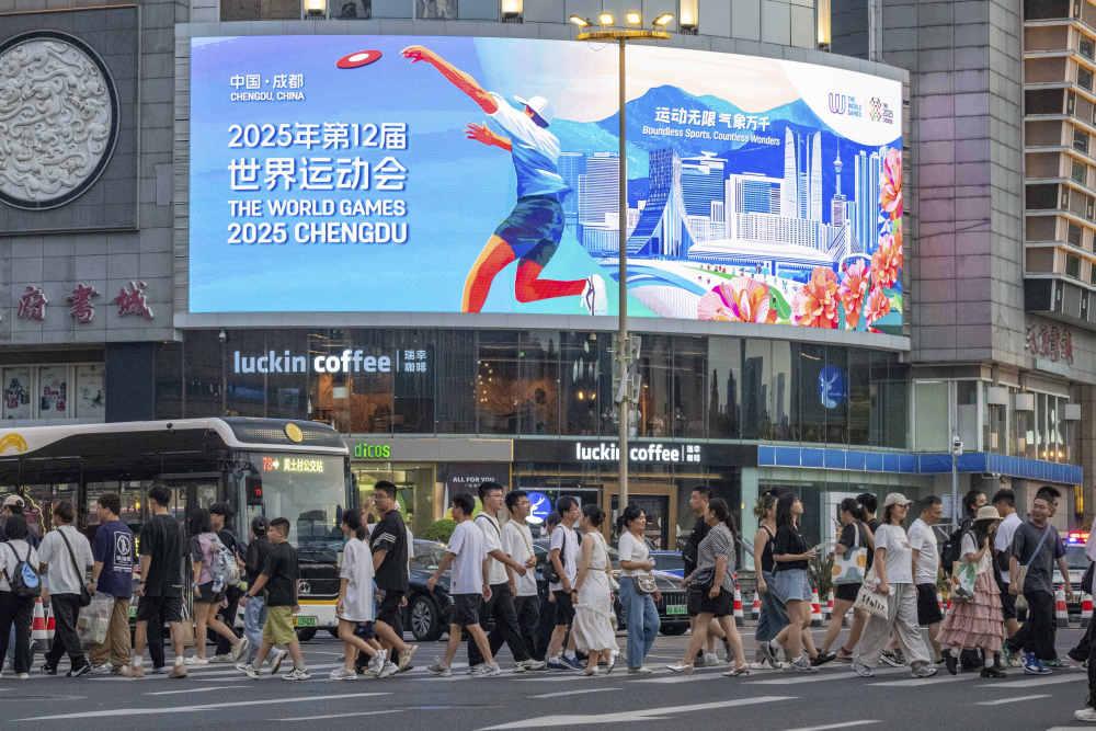 ↑在成都太古里拍摄的世运会倒计时牌。新华社记者 张丽芸 摄