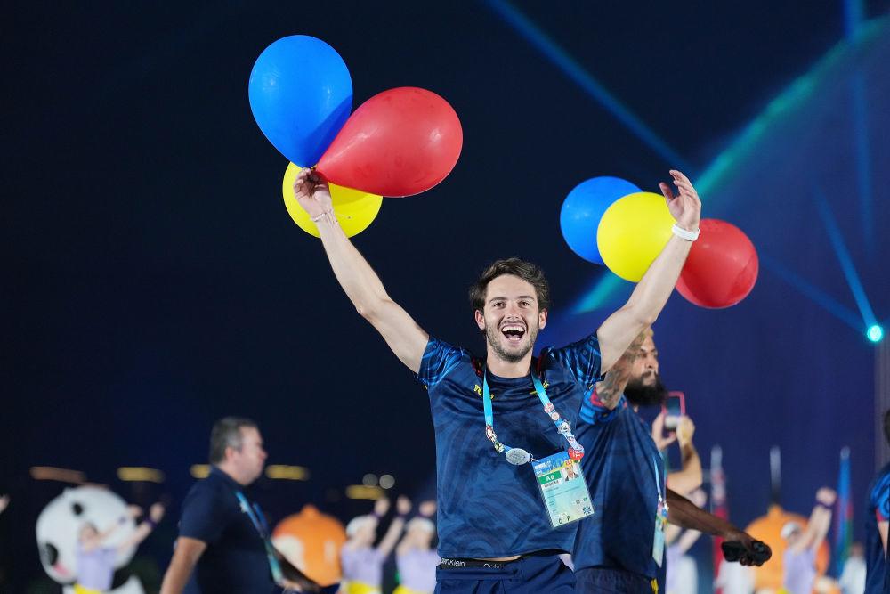 ↑全体运动员、教练员、裁判员、国际单项体育联合会官员代表宣誓。新华社记者 梁旭 摄