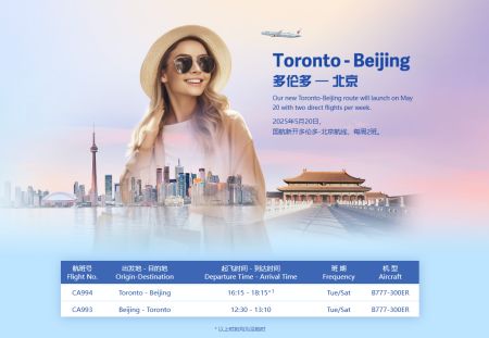 据报道,目前加航温哥华-北京往返直飞从每周4班增加至每周5班,机型为波音787-9梦想客机。国航(中国国际航空)自5月20日起新增多伦多-北京直飞航线,每周2班,现在每周增加一班,自8月27日起执行。