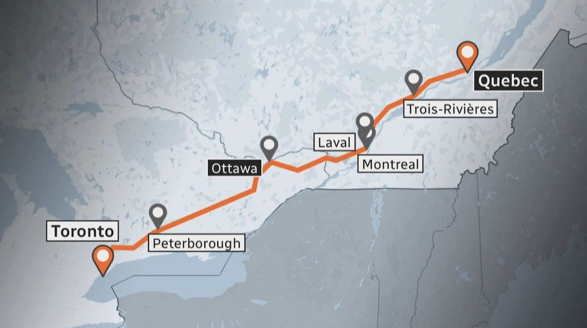 根据内部文件显示,计划中的多伦多至魁北克城高速铁路项目,未来或可令加拿大最繁忙的铁路走廊每日行走多达72班客运列车,显著提升整体运力及班次密度。负责该项目的联邦皇家公司估算,若全长约1,000公里的高速铁路网络落成,列车服务将大幅加密,并可将多伦多至满地可的行程时间缩短至约三小时。
