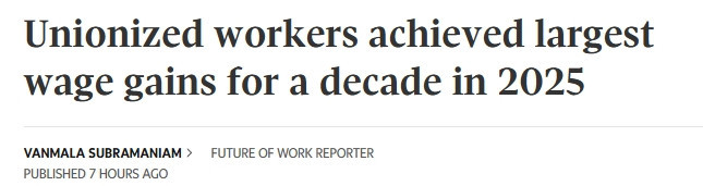 2025年工会工资增长的主要动力来自私营部门工会员工,其平均年度工资涨幅为4.2%,而公共部门为3.4%,与2023年和2024年的水平相近。不过,私营部门员工在新集体协议第一年内的平均加薪幅度高达7%,远高于以往任何一年。