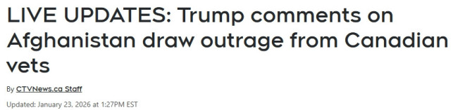 在美国总统特朗普撤回对加拿大加入其“和平委员会”(Board of Peace)的邀请后,加美关系周五再度成为焦点。与此同时,总理卡尼正在魁北克市召开内阁会议。而特朗普此前关于北约和阿富汗战争的言论,更是激怒了大批加拿大退伍军人。