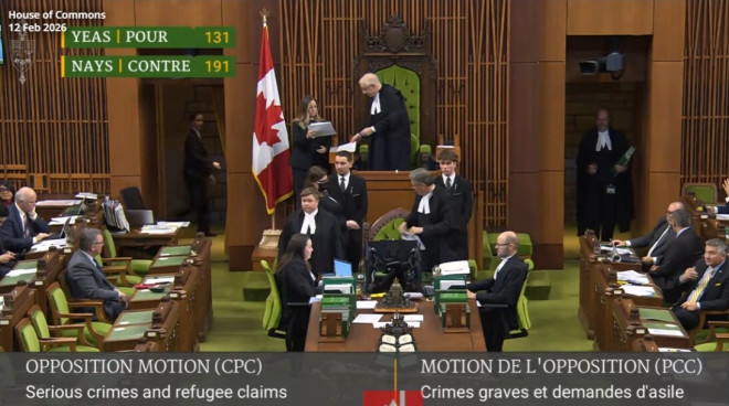 加拿大保守党近日在联邦众议院提出一项动议,要求禁止严重罪犯提出难民申请、终止宽松政策避免遣返,并废除C-5与C-75法案中被批评“过度宽松”的条款。在表决中,该动议最终未获通过。众议院投票结果为131票赞成、191票反对,动议被否决。
