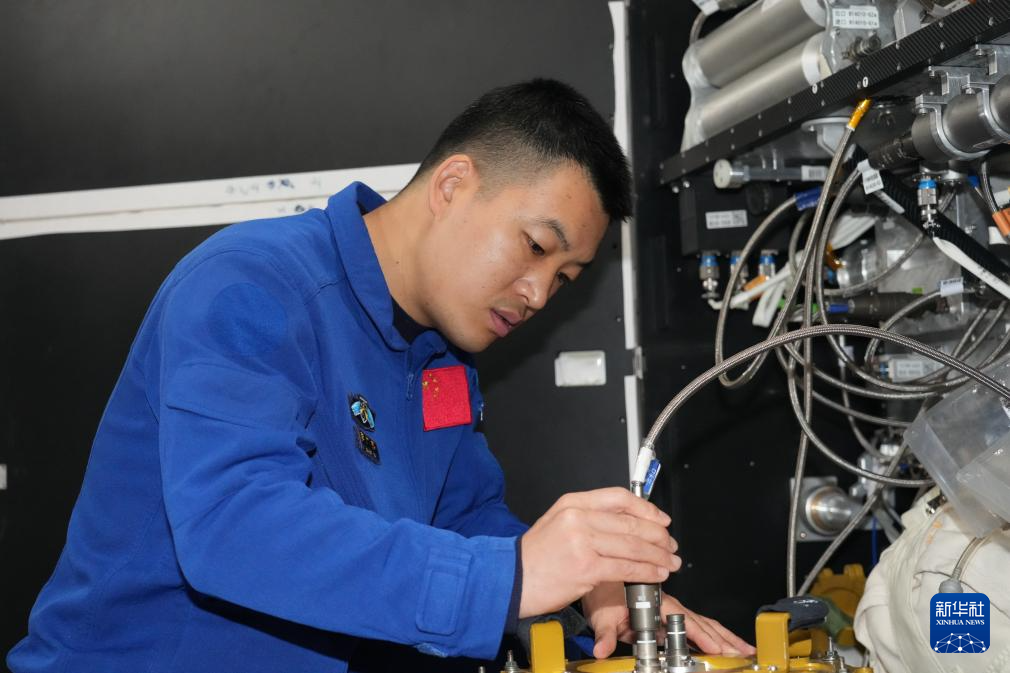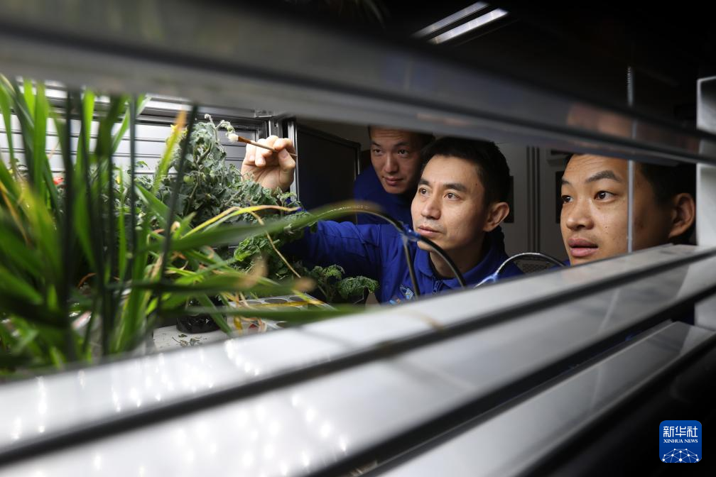 2024年2月5日,神舟十八号航天员乘组在进行植物授粉操作。新华社发(徐部 摄)