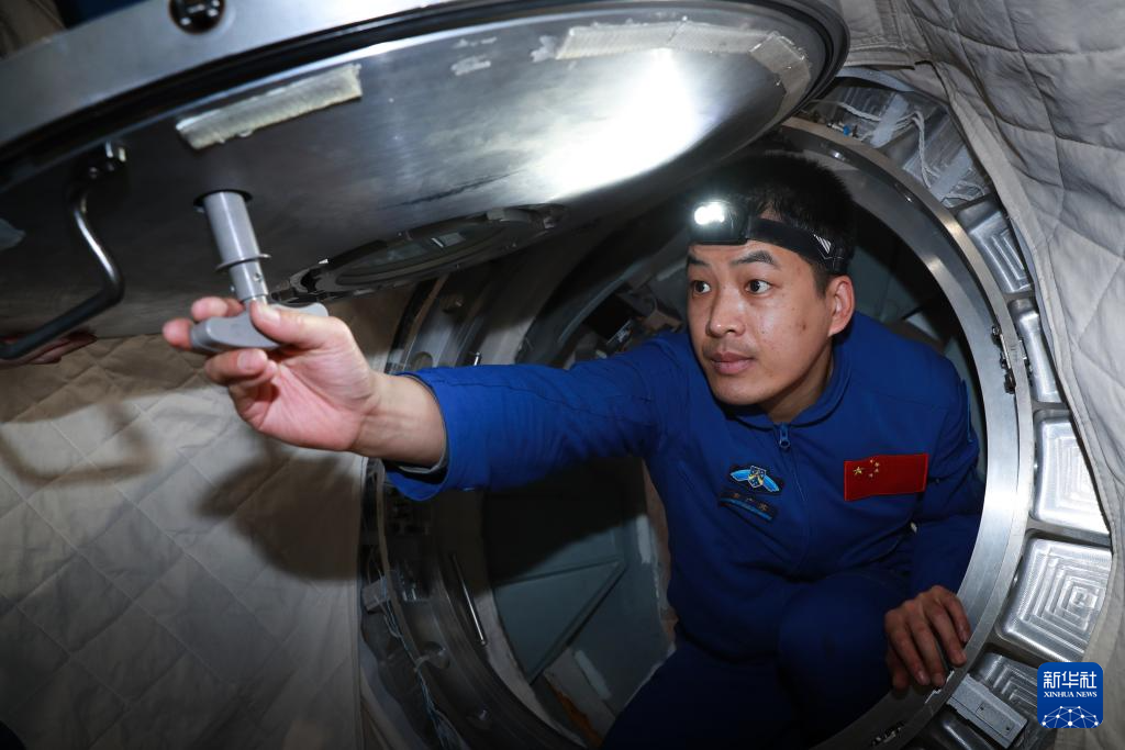 2024年1月29日,神舟十八号航天员李广苏在进行开关舱门训练。新华社发(徐部 摄)