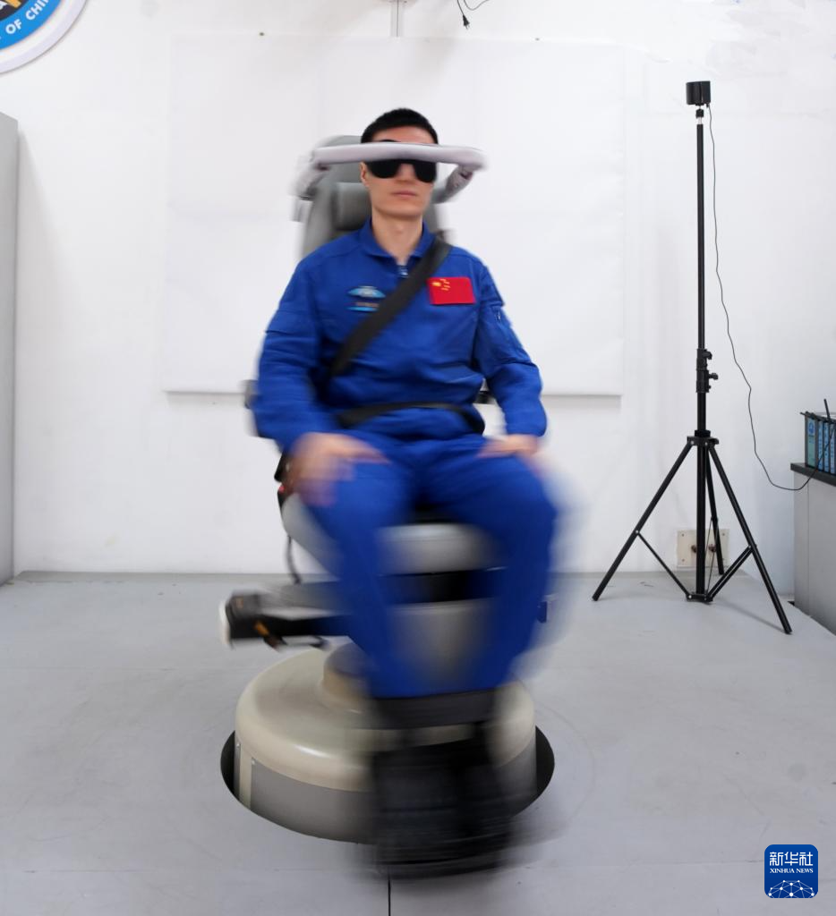 2023年12月4日,神舟十八号航天员李聪在进行转椅训练。新华社发(孔方舟摄)