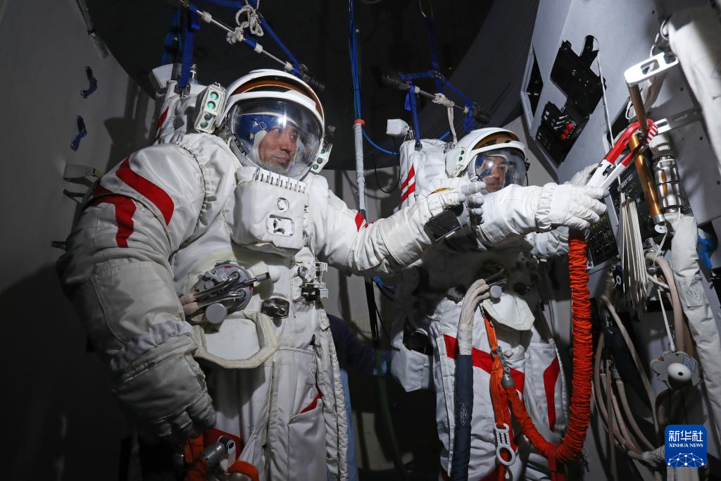 2024年1月15日,神舟十八号航天员叶光富(左)和李广苏在进行出舱程序训练。新华社发(徐部 摄)