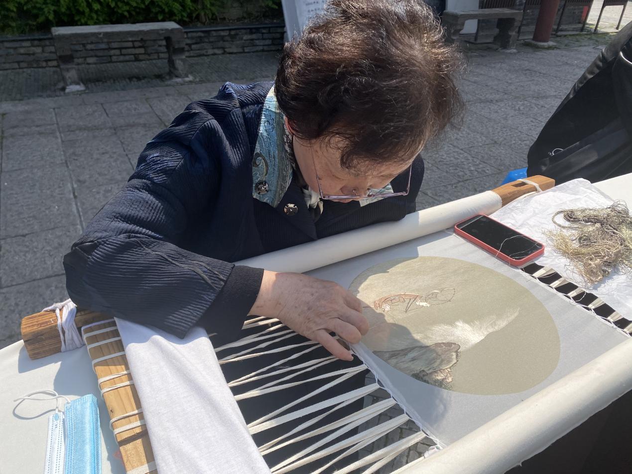 苏绣(扬州刺绣)代表性传承人吴晓平在非遗活动展上展示刺绣技艺。新华网记者 吴咏玲摄