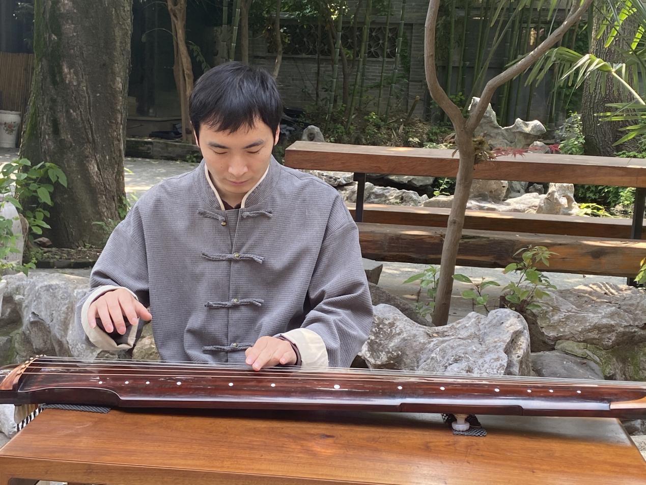 文脉相承离不开这批“匠人”的匠心坚守,他们中有耕耘半生的前辈大师,也有赓续接力的后辈力量。在距离东关街两公里外的仁丰里永乐琴坊里,青年琴师高鑫正抚琴弹奏着《梅花三弄》,清越的琴声沁入人心。高鑫是广陵派古琴非遗传承人,从小受斫琴师父亲的影响,学习计算机专业的他最终还是选择弃“理”从“文”,钻研琴技,将琴坊开在了这样一条非遗扎堆的历史文化老街上。