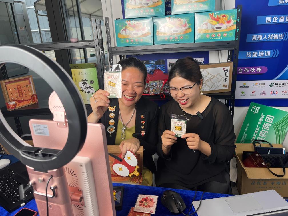 直播让消费者获取文创产品的路径更加快捷。在粤港澳大湾区文化产业创新展上设置的直播长廊里,广东展团在直播间推荐着各类文创产品。