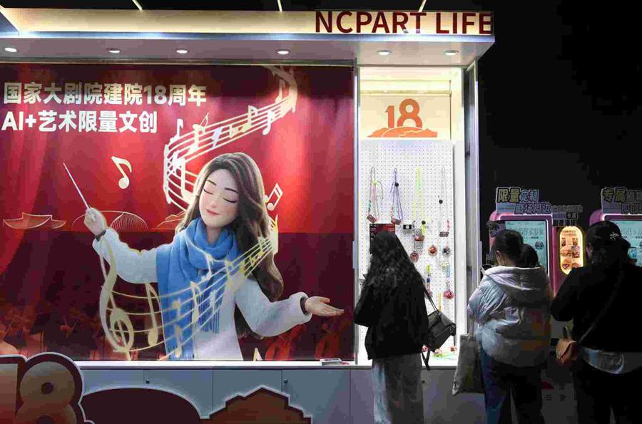 图为观众在国家大剧院选购文创产品。新华社记者 罗晓光 摄