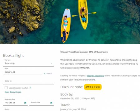 加拿大的加航(Air Canada)及西捷航空(WestJet)正为往返全球合共超过180个目的地的航线提供优惠,其中不乏具吸引力的选择。加航旅客如果有兴趣于2024年1月3日至6月30日期间,到美加、墨西哥或加勒比海地区,使用促销代码 2023GIFT 订票,可享获75折优惠。
