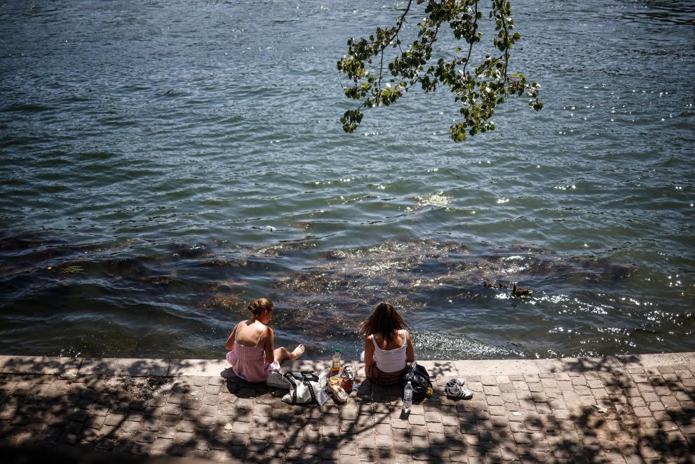 7月1日,游客在法国巴黎塞纳河畔纳凉。新华社/欧新