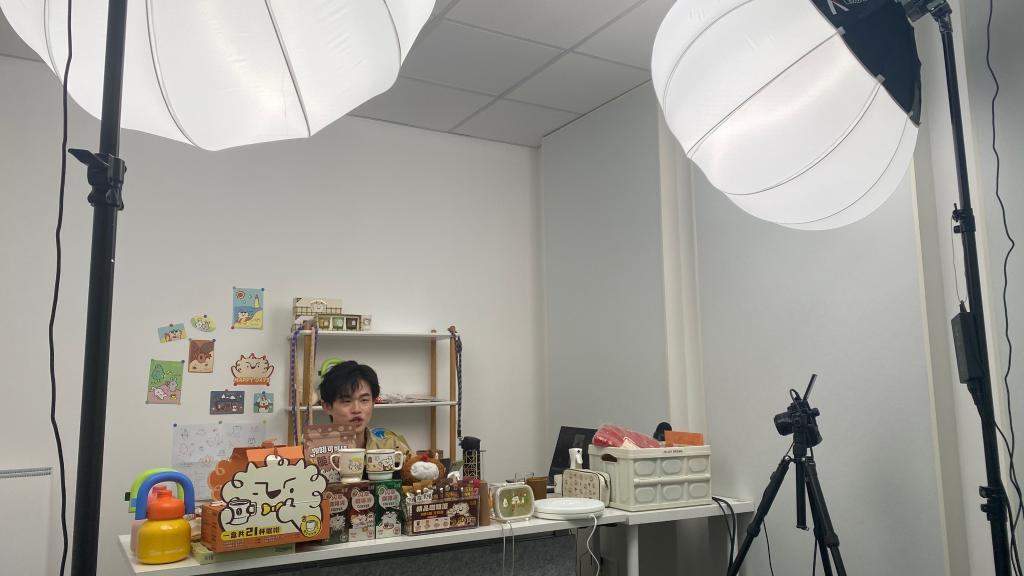 2024年2月26日,位于上海西岸的永璞咖啡直播间,一名咖啡销售主播正在直播销售咖啡冷萃液。新华社记者许晓青 摄