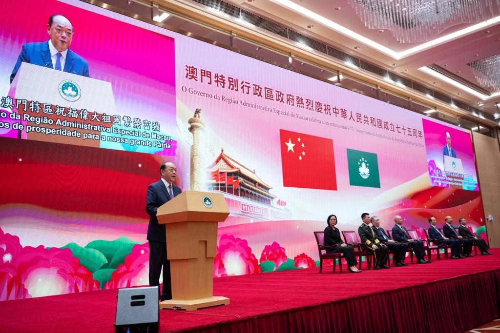 新华社澳门10月1日电(记者刘刚、李寒芳)澳门特区政府1日举行升旗仪式和国庆酒会,庆祝中华人民共和国成立75周年。