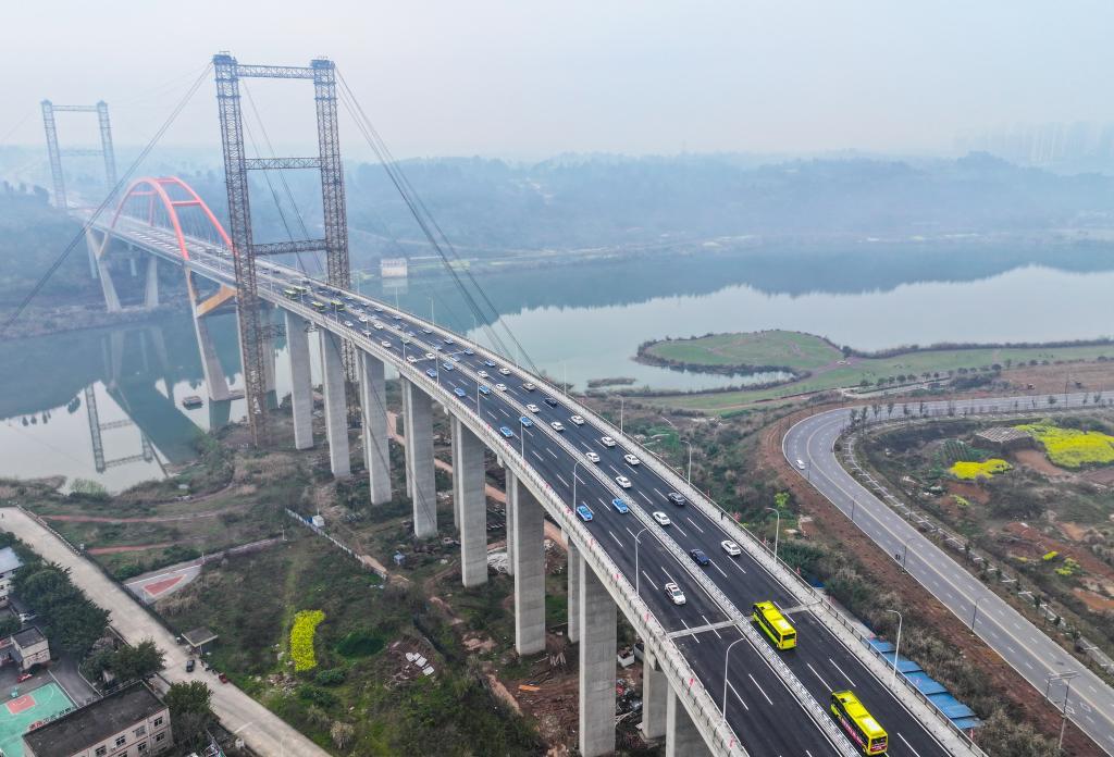3月20日,车辆行驶在重庆潼南东升大桥上(无人机照片)。新华社记者 王全超 摄