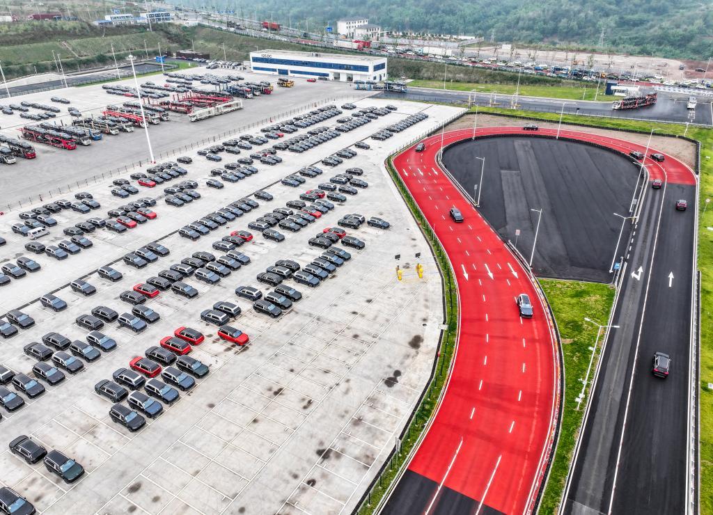 2024年11月6日在位于重庆市两江新区的赛力斯超级工厂拍摄的新能源汽车(无人机照片)。新华社记者 王全超 摄