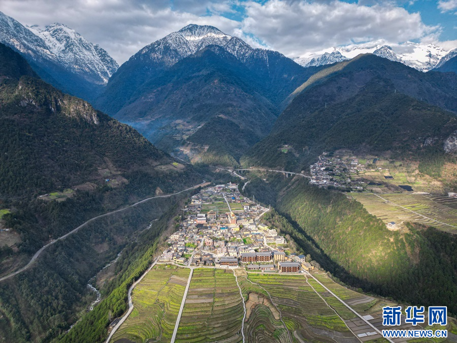 航拍贡山县丙中洛镇雾里村(3月27日 摄)。新华网发 郭康 摄
