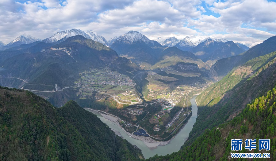航拍贡山县丙中洛镇(3月27日 摄)。新华网发 郭康 摄